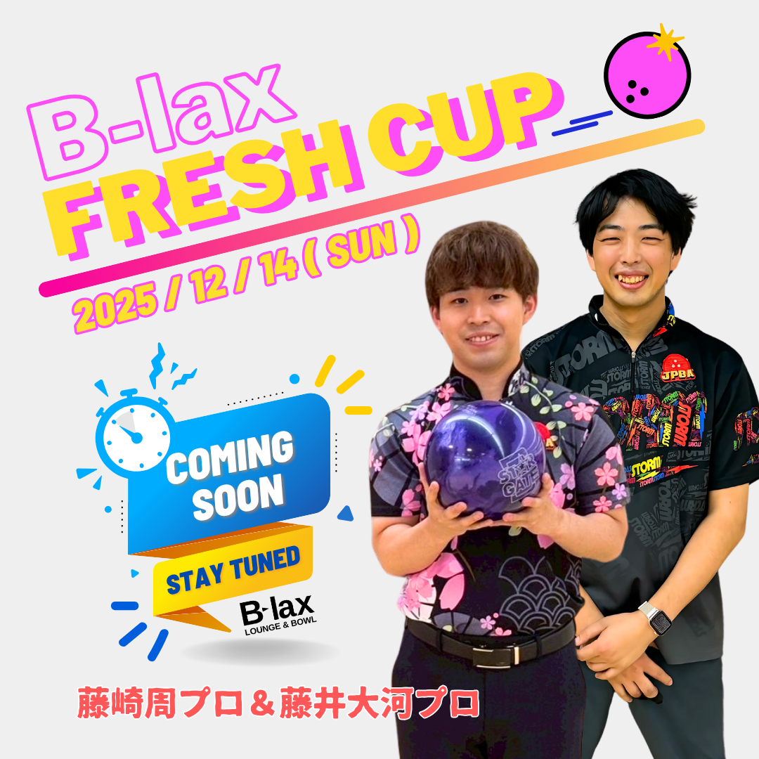 12月142025 B-lax Fresh CUP イベントタグ フレッシュなプロと一緒に投げよう!ゲーム終了後はプロレッスン付き。 ◆会場◆LOUNGE & BOWL B-lax 2F ◆日付◆2025年12月14日 日曜日 ◆時間◆18時00分~21時00分 ◆参加資格◆どなたでもご参加いただけます。 ◆参加費◆一律:¥2,500 ◆定員◆30名 ◆ゲストプロ◆藤崎周プロ 藤井大河プロ ◆レーンパターン◆12月デイリーパターン ◆ハンディキャップ◆センターハンデ お持ちでない方は年齢性別ハンデ ◆表彰◆順位賞・HG賞・BB賞 ◆競技内容◆4ゲーム アメリカン方式 ゲーム終了後プロレッスン ◆プロイベント参加の皆様へ◆今話題の『次世代』ボウリングマシンEDGE Stringを近くで見学できます。 プロの投球シーンも撮影可能!SNSへ投稿する際は#ビーラックス で! ◆当日の流れ◆18時00分~ 練習投球 18時15分~ 練習投球(約10分~15分) 18時30分~ 開会の挨拶&プロ紹介&始球式 18時45分頃~ ゲーム開始(4ゲーム投球) 20時30分頃 ゲーム終了 ※お時間は目安です。当日の運営業況により前後します。 1ゲームごとにプロがレーンを移動します! 同じレーンで投球できるかは当日のお楽しみ♪ 雑談&ハイタッチ&2ショット撮影等も可能! ◆藤崎主周プロ&藤井大河プロにメッセージが送れる!◆店舗で配布するQRコードからアンケート回答後、プロへメッセージが送れます! ▼今すぐ予約する 必須代表者氏名 必須連絡先 任意メールアドレス 必須参加イベント 必須開催日 必須希望時間1 任意希望時間2(複数シフトの場合) 任意その他要望