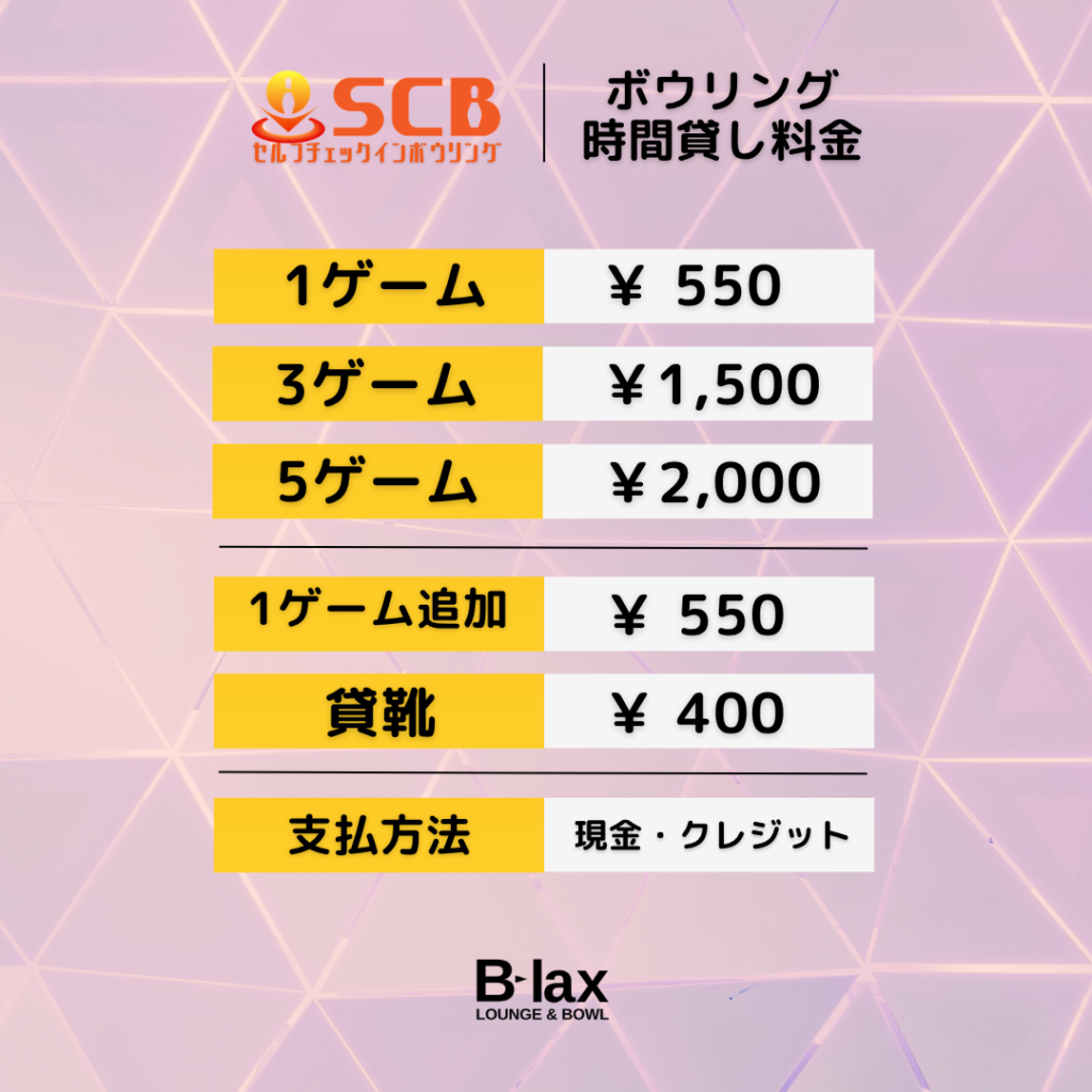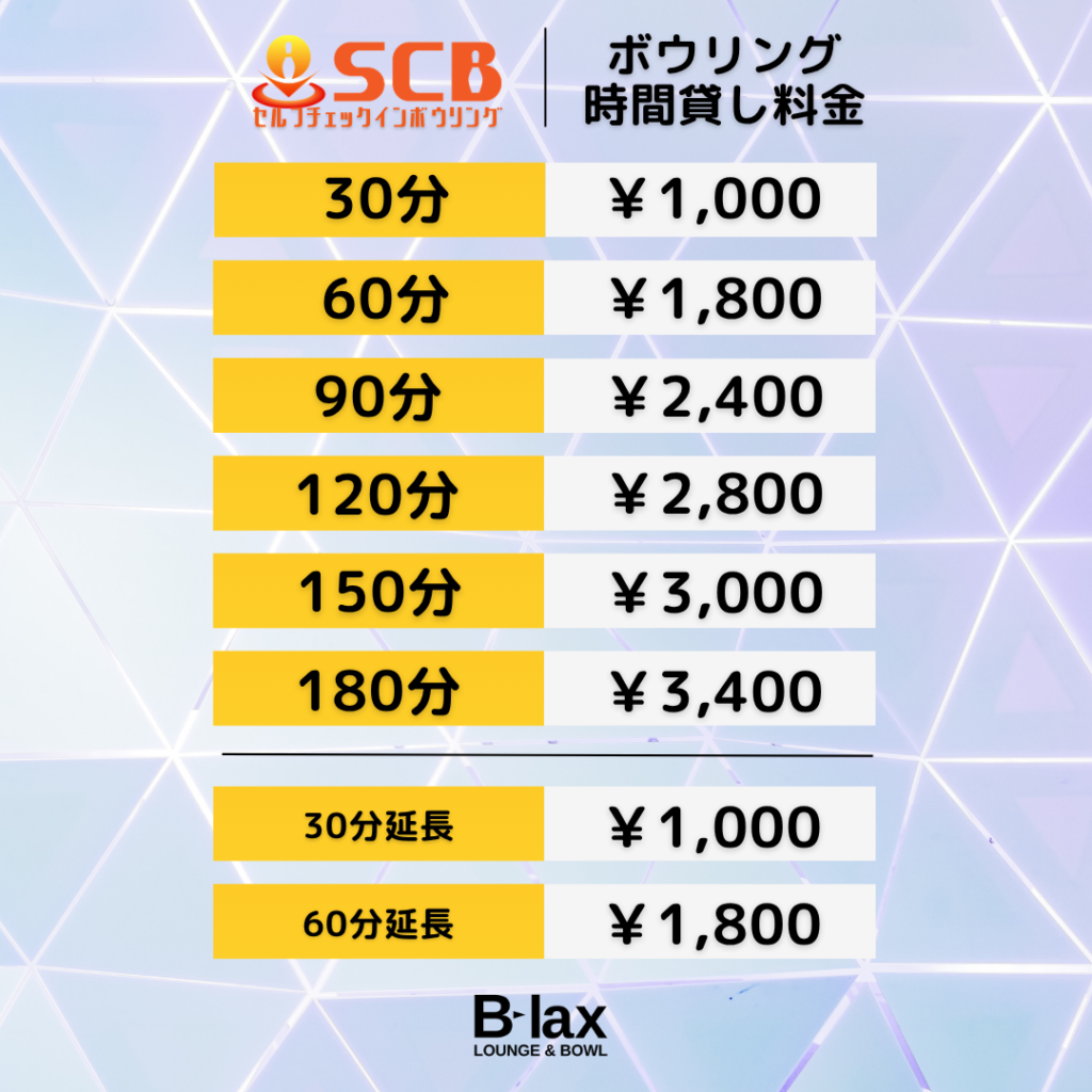セルフチェックインボウリング (時間貸し・ゲーム貸し料金)