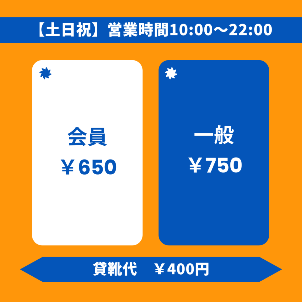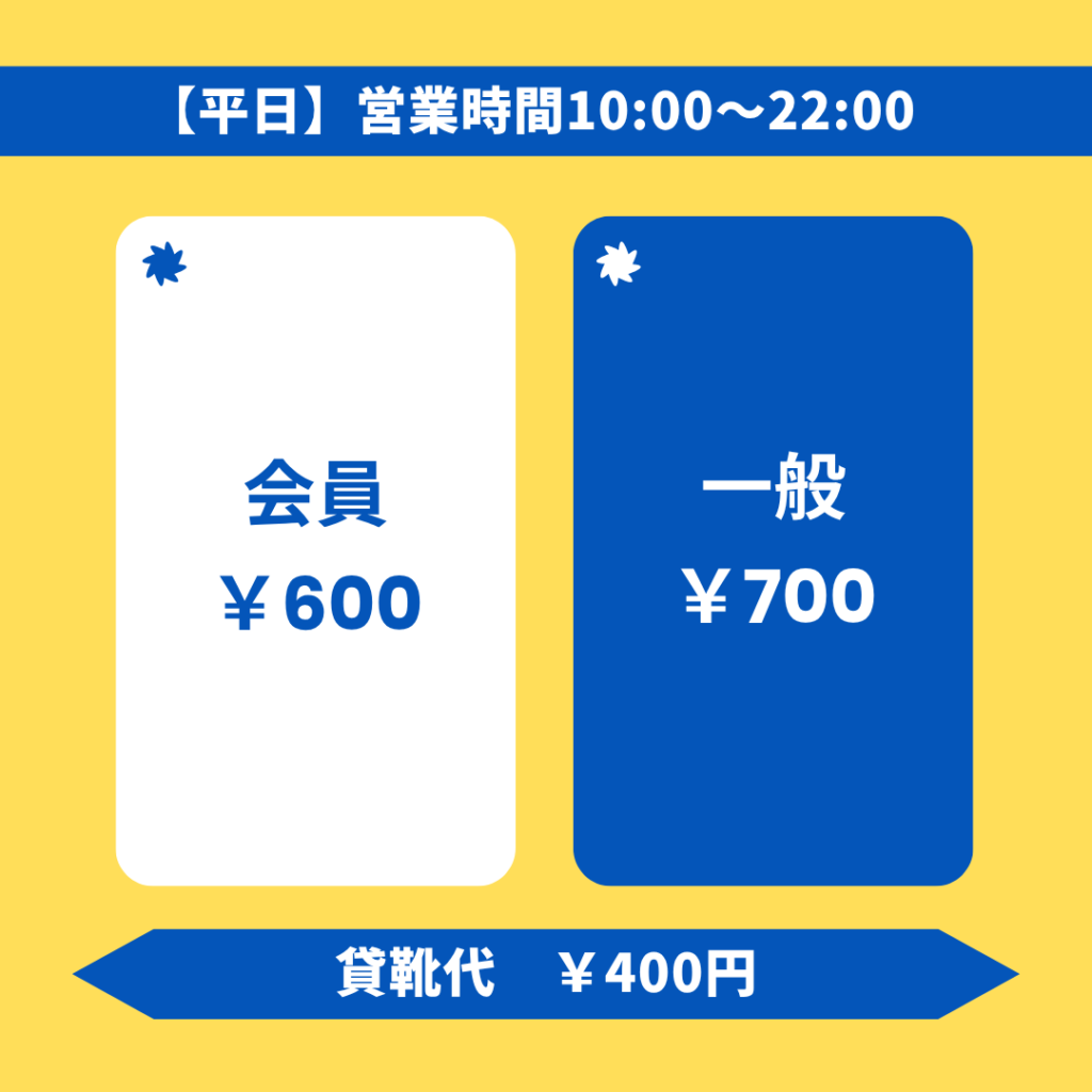※ボウリングシューズをお持ちでない場合、別途貸靴代(400円)がかかります。