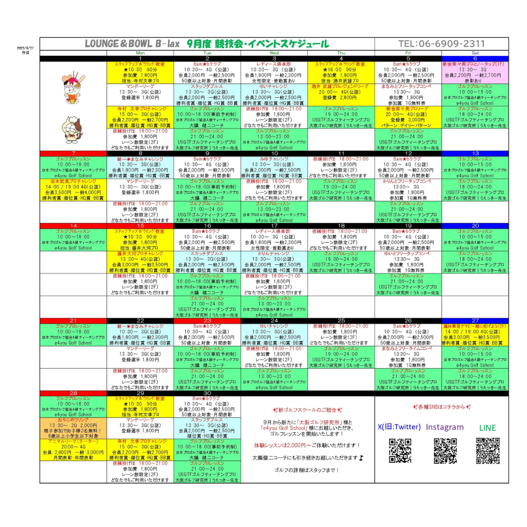 SPECIAL [ダウンロードページ] イベントカレンダー&レーンパターン イベントカレンダー&レーンパターンはコチラからダウンロードできます。 2025年9月~12月のカレンダー&レーンパターンはコチラからダウンロードできます。※画像をクリックして保存してください。 2026年1月~8月のカレンダー&レーンパターンはコチラからダウンロードできます。※画像をクリックして保存してください。